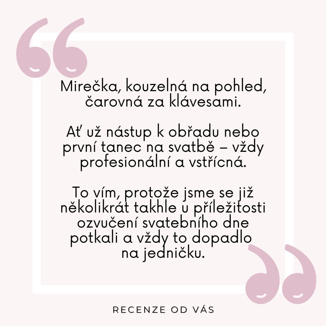 Pokud máte oblíbenou skladbu a nenašli jste ji v mém seznamu, nevěšte hlavu! Velmi ráda se ji naučím a zahraju ji na Vaší svatbě.